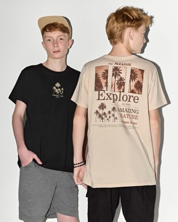 Match perfeito entre conforto e estilo, a Camiseta Elian Beats é a escolha certa para os meninos que curtem um visual descolado. Feita em malha flamê, ela possui mangas curtas e uma sutil estampa frontal. O destaque é a maxi estampa nas costas com imagens de palmeiras e frases, trazendo um toque de atitude para o visual de verão. Ideal para passeios ao ar livre, momentos de lazer ou curtir um dia de sol com os amigos, aposte nesse item cheio de personalidade para o guarda-roupa teen!