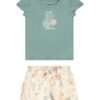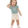 O Conjunto Colorittá é composto por blusa em cotton leve e short em malha linho. A blusa possui mangas curtas com franzidos nos ombros e uma estampa delicada com elementos marinhos, além de detalhes em puff e brilho para deixar o visual ainda mais fofo. Já o short conta com elástico no cós, detalhe frontal em laço e estampa em toda a peça combinando com a blusa. Ideal para momentos de lazer e passeios, esse conjunto é perfeito para garantir leveza e estilo em dias descontraídos. Aposte!