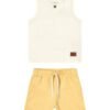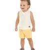O Conjunto Colorittá é composto por regata em meia malha e bermuda em moletom eco linho. A regata possui peitilho com um botão, enquanto a bermuda conta com elástico no cós e recorte simulando bolso. O visual clean e moderno é ideal para passeios em dias quentes, garantindo leveza e liberdade de movimento. Aposte nesse look completo para os primeiros passeios dos pequenos!
