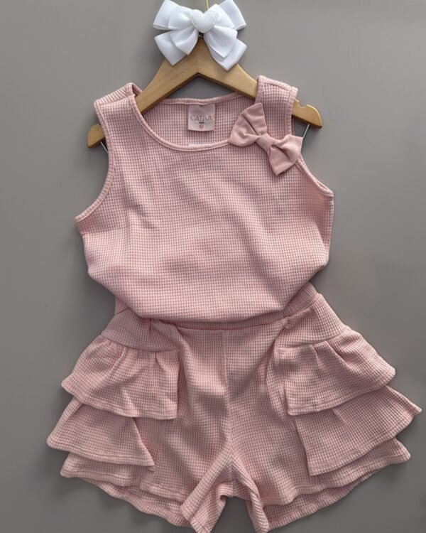 Apresentamos o delicado Conjunto Cativa Cropped Regata e Short com Babado, uma peça que incorpora o charme e a modernidade da marca. Ideal para os dias quentes, este conjunto na cor Rosa Pérola oferece conforto máximo e um visual super fashion.