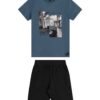 Conjunto Curto Juvenil Menino Estampa Urbana Beats Azul
