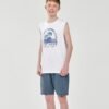 Perfeito para um visual leve e confortável, o Conjunto Elian Beats é composto por regata em meia malha e bermuda em moletom de linho. A regata possui estampa tropical com coqueiros e frases que transmitem o mood de verão. Já a bermuda conta com elástico no cós e bolsos laterais, garantindo praticidade para o dia a dia. Ideal para curtir os dias de sol com estilo e liberdade de movimentos, aposte nesse look completo para compor o guarda-roupa dos meninos!