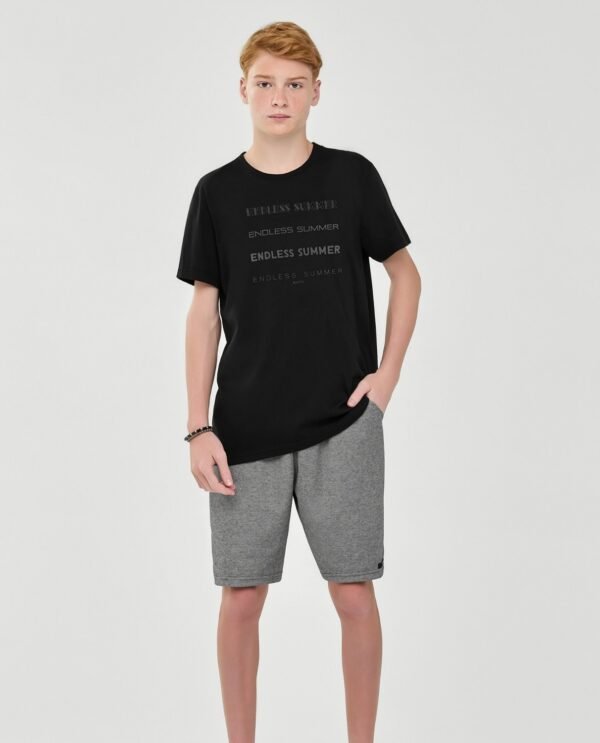 Escolha certa para um visual moderno e confortável, o Conjunto Elian Beats é composto por camiseta em meia malha e bermuda em moletinho dublado. A camiseta possui mangas curtas e estampa frontal com a frase “Endless Summer” (Verão Sem Fim), trazendo a vibe tropical para à peça. Já a bermuda conta com elástico no cós e bolsos laterais. Ideal para momentos de lazer, viagens ou produções urbanas cheias de atitude, invista nesse conjunto versátil para compor o guarda-roupa teen!