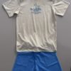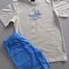 A combinação da camiseta bege neutra com o short azul vibrante cria um look casual, moderno e fácil de usar. É o conjunto perfeito para a escola, parque ou para relaxar em casa, unindo a qualidade do algodão com o conforto do moletinho.