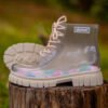 O Coturno Transparente Kidsplash! transforma cada passo em pura diversão! Seu design inovador permite infinitas combinações – basta trocar as meias para um novo look cheio de estilo. Leve, macio e atóxico, garante conforto e liberdade para todas as aventuras. Um toque moderno e descolado para os pequenos exploradores!