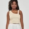 Must-have da estação, a Regata Elian Beats é uma opção moderna e que traz um brilho único para momentos especiais e festas. Feita em malha canelada com lurex, ela possui comprimento cropped, modelagem ajustada e decote assimétrico com alça, garantindo um visual autêntico. Além disso, sua padronagem listrada oferece um toque atemporal. Versátil e cheio de estilo, aposte nesse item indispensável para combinar com shorts, calças ou saia e criar composições cheias de personalidade!