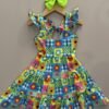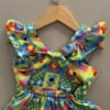 Caimento Encantador: A estampa (que pode ser floral, geométrica, divertida ou a que você tiver em estoque) ganha destaque sendo um vestido de frente única junto ao recorte na cintura com pregas, garantindo um caimento rodado super charmoso e que as pequenas adoram.