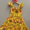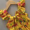 Caimento Encantador: A estampa (que pode ser floral, geométrica, divertida ou a que você tiver em estoque) ganha destaque sendo um vestido de frente única junto ao recorte na cintura com pregas, garantindo um caimento rodado super charmoso e que as pequenas adoram.