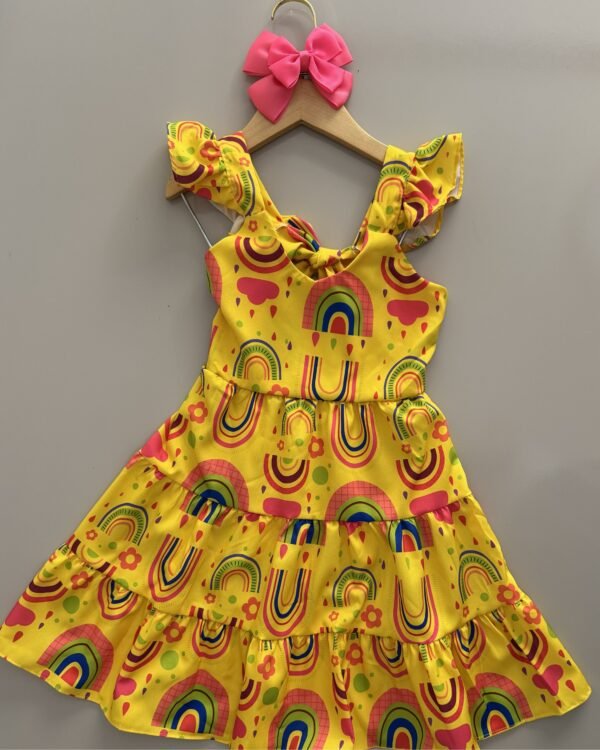 Conforto Inigualável: Confeccionado em poliéster e elastano, este vestido oferece conforto e liberdade de movimento durante todo o dia, sendo ideal para a pele sensível das crianças.