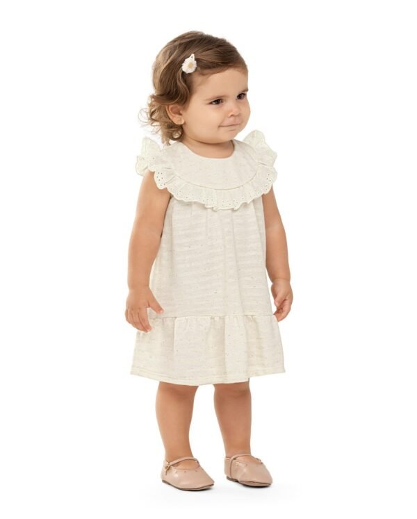 O Vestido Colorittá é peça-chave para um look charmoso e leve. Feito em malha texturizada, ele possui gola com babado e recortes franzidos que proporcionam uma modelagem soltinha, oferecendo conforto e movimento para as meninas. Sua textura diferenciada traz um charme especial à peça, tornando ela ideal para aproveitar os dias de sol com elegância. Invista nesse vestido para garantir um visual delicado e moderno!